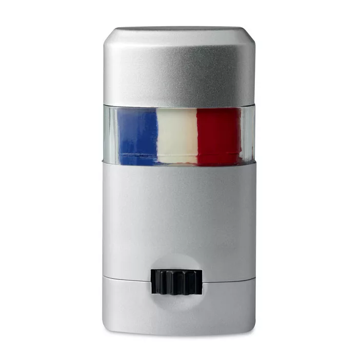 Testfestő stift ezüst és átlátszó tokban.