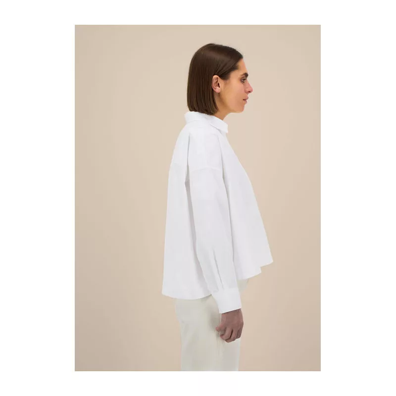 A The Stella Harper egy könnyű, organikus poplin pamutból készült női boxy ing. Puha tapintást és légáteresztő kényelmet biztosít. Modern, túlméretezett (oversized) szabása nőies formával párosul; strukturált ingnyakkal, rávarrt gomboláspánttal és szögletes, dupla rakással ellátott mandzsettákkal készül. Az ikertűs tűzés a vállrészén és a varratoknál tartósságot és eleganciát kölcsönöz, míg a hátul hosszított alj és az oldalsó hasítékok előnyös sziluettet alkotnak. Ezt a stílusos inget lifestyle és egyedi brandinghez tervezték, prémium alapot nyújtva hímzéshez vagy nyomtatáshoz.