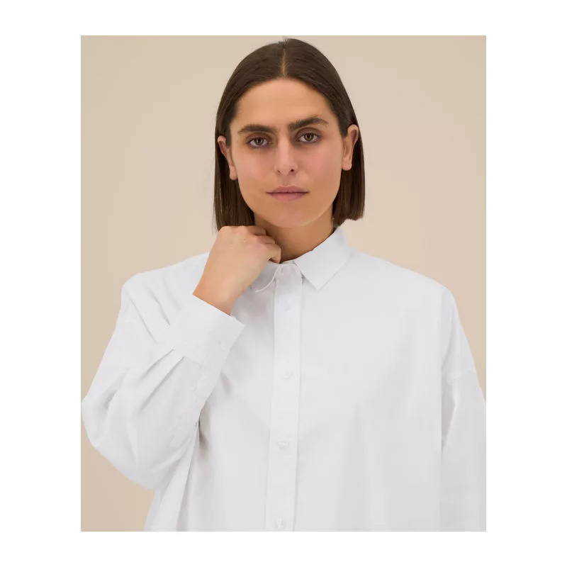 A The Stella Harper egy könnyű, organikus poplin pamutból készült női boxy ing. Puha tapintást és légáteresztő kényelmet biztosít. Modern, túlméretezett (oversized) szabása nőies formával párosul; strukturált ingnyakkal, rávarrt gomboláspánttal és szögletes, dupla rakással ellátott mandzsettákkal készül. Az ikertűs tűzés a vállrészén és a varratoknál tartósságot és eleganciát kölcsönöz, míg a hátul hosszított alj és az oldalsó hasítékok előnyös sziluettet alkotnak. Ezt a stílusos inget lifestyle és egyedi brandinghez tervezték, prémium alapot nyújtva hímzéshez vagy nyomtatáshoz.