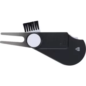 Újrahasznosított ABS anyagból készült multifunkciós golfeszköz beépített jelölővel, pitch forkkal, tisztítókefével és pontszámlálóval. A hátoldalon recycled (újrahasznosított) alapanyagra utaló logó található. Újrahasznosított polietilén tasakba csomagolva.