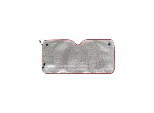 Alufóliával kasírozott napellenző szélvédőre színes szegéllyel, tapadókoronggal rögzíthető, 55g. Vastagsága: 1,8 mm.