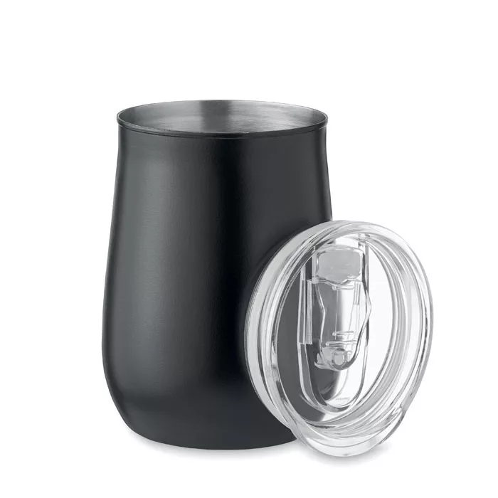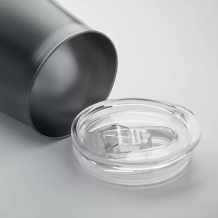 Újrahasznosított rozsdamentes acél (90% újrahasznosított rozsdamentes acél, 10% rozsdamentes acél), porszórt bevonatú pohár fedővel, csúsztatható ivónyílással ellátott fedéllel. Űrtartalom: 500 ml. Mivel ez egy szimplafalú bögre, hőátadás lehetséges.