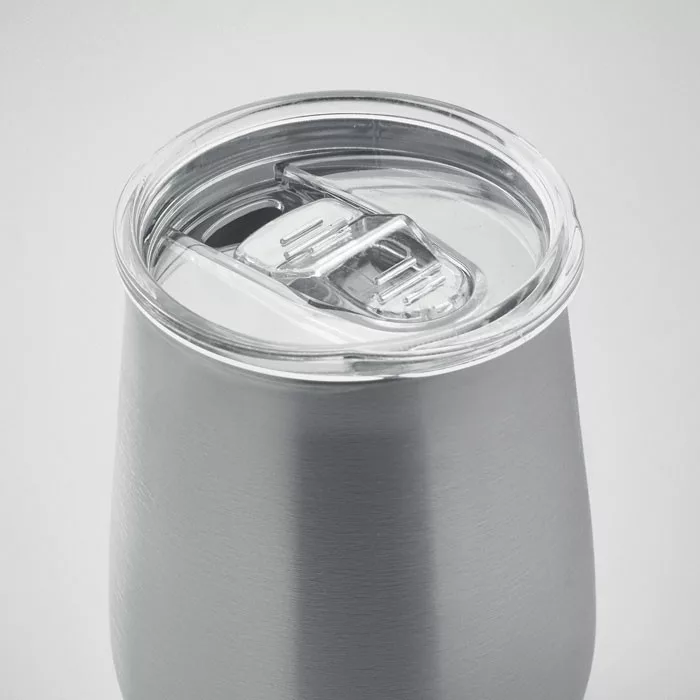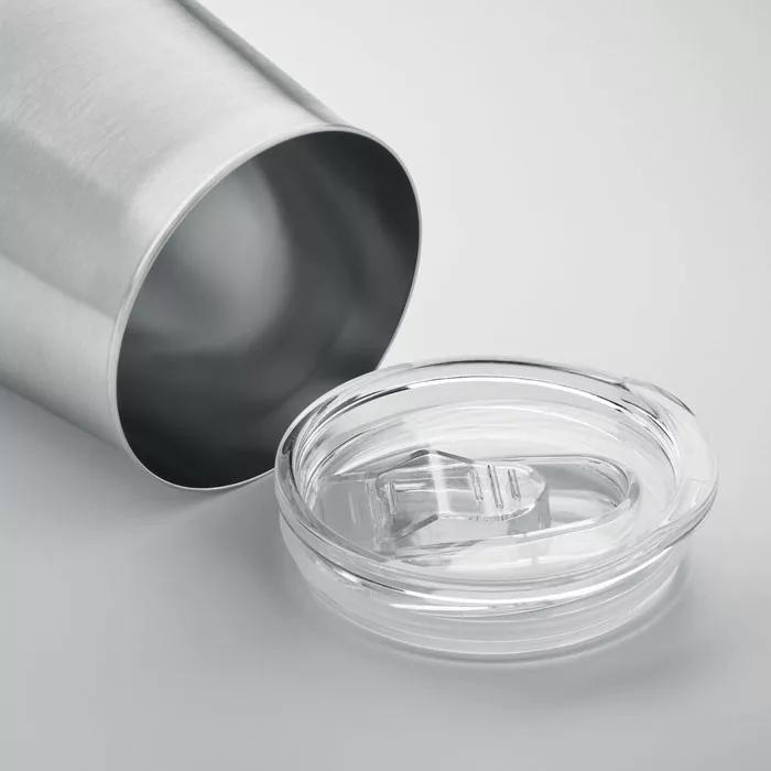 Újrahasznosított rozsdamentes acél (90% újrahasznosított rozsdamentes acél, 10% rozsdamentes acél), porszórt bevonatú pohár fedővel, csúsztatható ivónyílással ellátott fedéllel. Űrtartalom: 500 ml. Mivel ez egy szimplafalú bögre, hőátadás lehetséges.