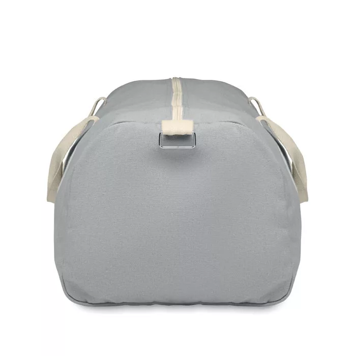 Sporttáska 320 g/m² vastag újrahasznosított anyagból (60% újrahasznosított pamut, 40% újrahasznosított poliészter), pamut fülekkel, állítható és levehető vállpánttal.