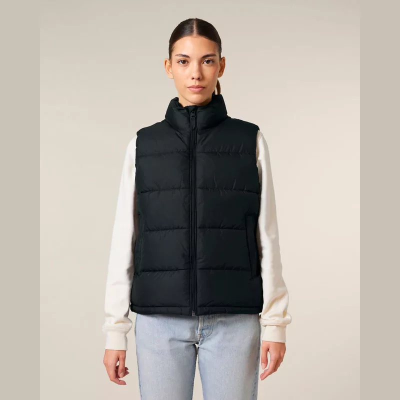 Az uniszex prémium pufi mellény -15°C-ig biztosít kellemes meleget. 100%-ban újrahasznosított poliészterből készült. Cipzáras zsebekkel, álló gallérral és sokoldalú pántokkal rendelkezik.