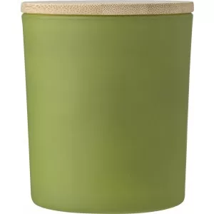 Üveggyertya növényi alapú viasszal és bambusz fedővel. A gyertya főleg növényi alapú viaszt (karnaubaviaszt) tartalmaz, égési ideje körülbelül 46 óra. Négy illat az üveg színétől függően: fahéj (piros), vanília (fehér), szantálfa (fekete) és jázmin (zöld). Egyenként, fehér papírpalástba csomagolva.