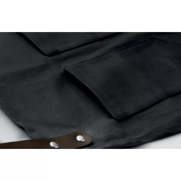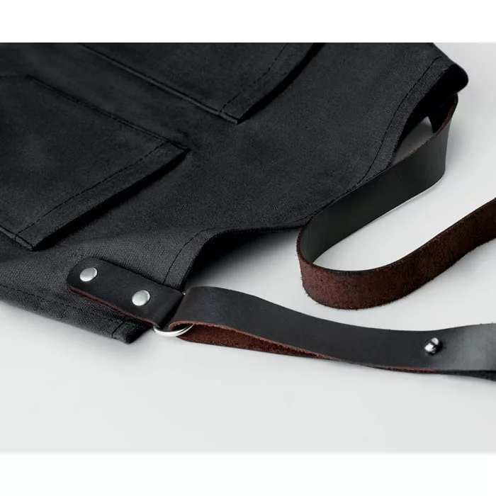 Vászon és bőr kötény (Fekete)