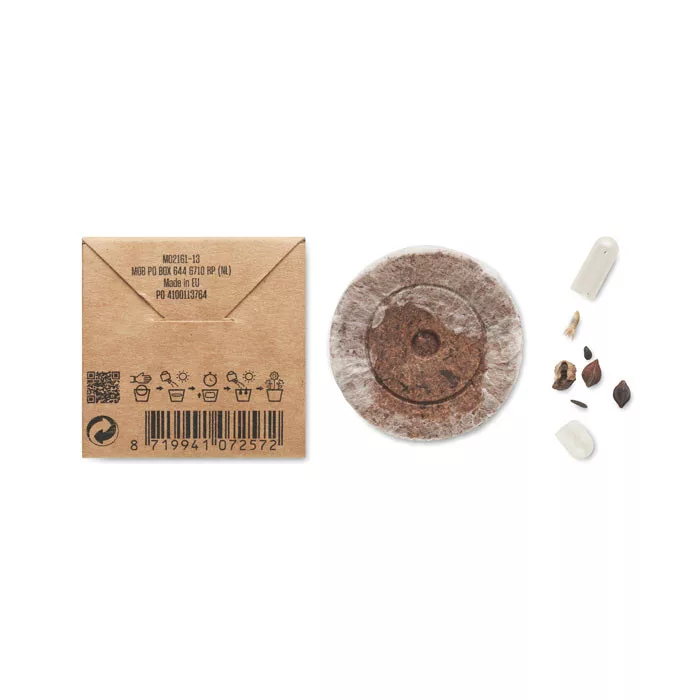 Préselt tőzeg korong nyári virágmag keverékkel, karton dobozban. EU-ban gyártva.