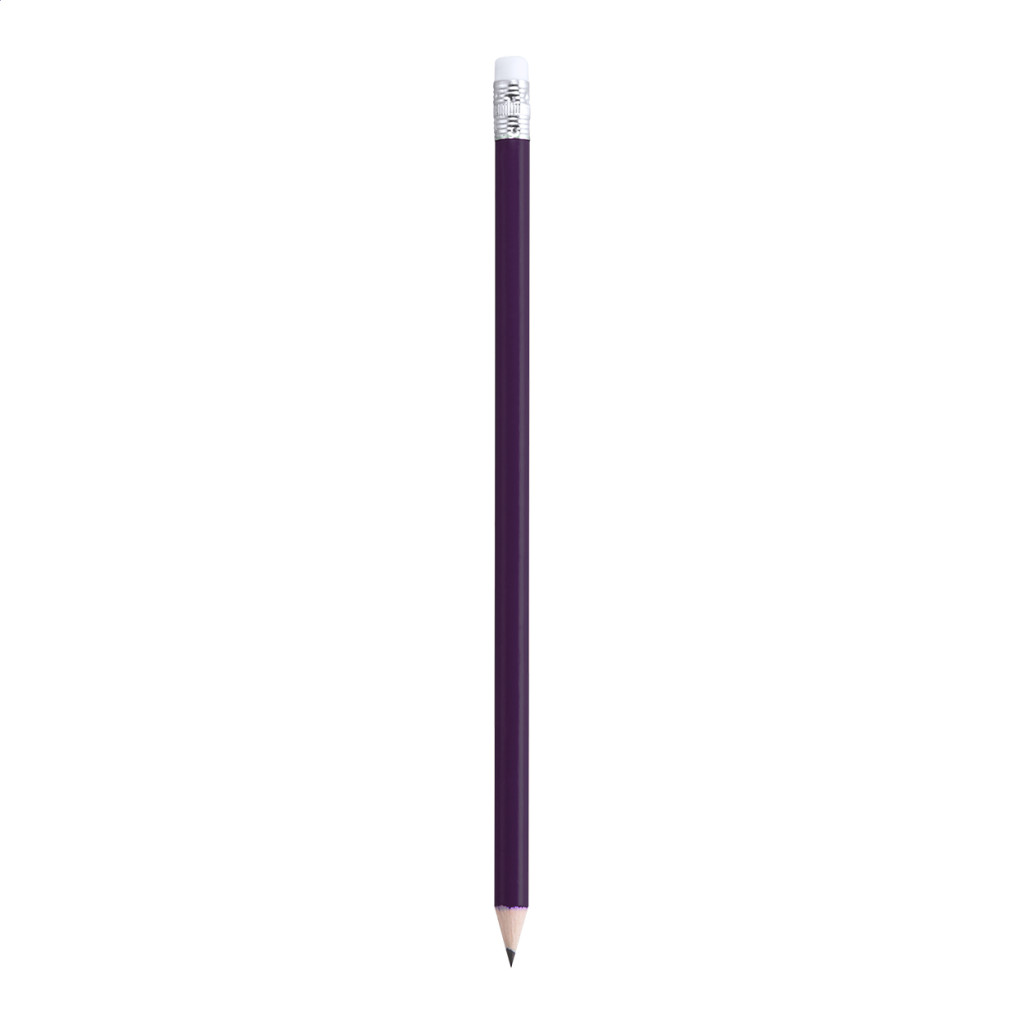 Színes bevonatú fa HB-s grafitceruza, radírral a végén. Kihegyezve szállítjuk.