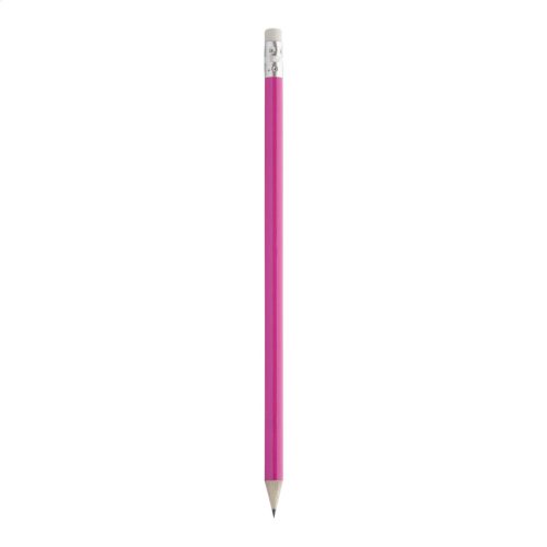 Színes bevonatú fa HB-s grafitceruza, radírral a végén. Kihegyezve szállítjuk.