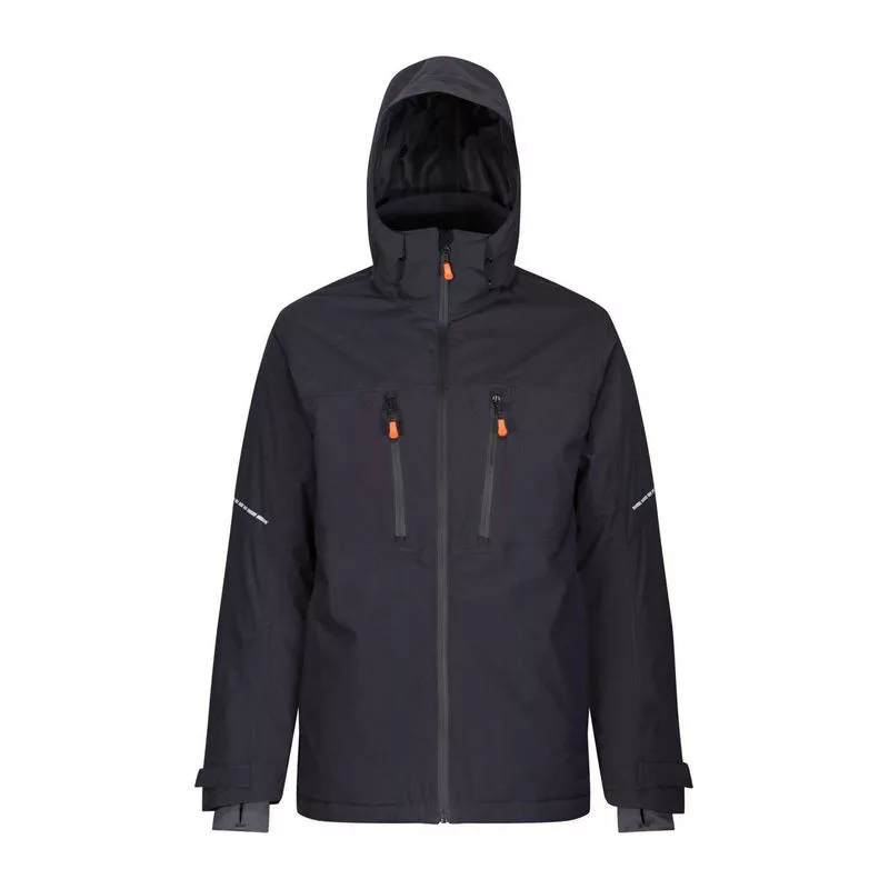 Alapanyag információ. Légáteresztő képesség 10 000g/m2/24 óra. Vízálló és lélegző ISOTEX 10000 100% poliészter sztreccses szövet. Poliészter ripstop szövet. Megfelel az EN343:2003 A1:2007 szabvány 3:2 osztálynak. Tartós vízlepergető felület. Szalagerősített varrások. Közepes Thermo-Guard szigetelés. Különleges tulajdonságok. Hőtükröző bélésbetét a hő megtartásáért. RFID zsebvédelem. Elöl középen vízálló cipzár. 2 vízálló cipzáras mellzseb. 2 cipzáras alsó zseb. Rejtett kapucni állítókkal. Fényvisszaverő kivitel a jobb láthatóságért. Állítható mandzsetták. Belső viharmandzsetták. Behúzózsinórral állítható szegély. Belül cipzáras hímzési hozzáférés. Meleg tapintású bélelt gallér.