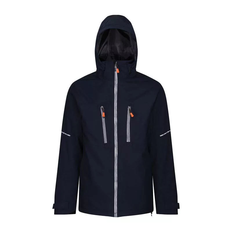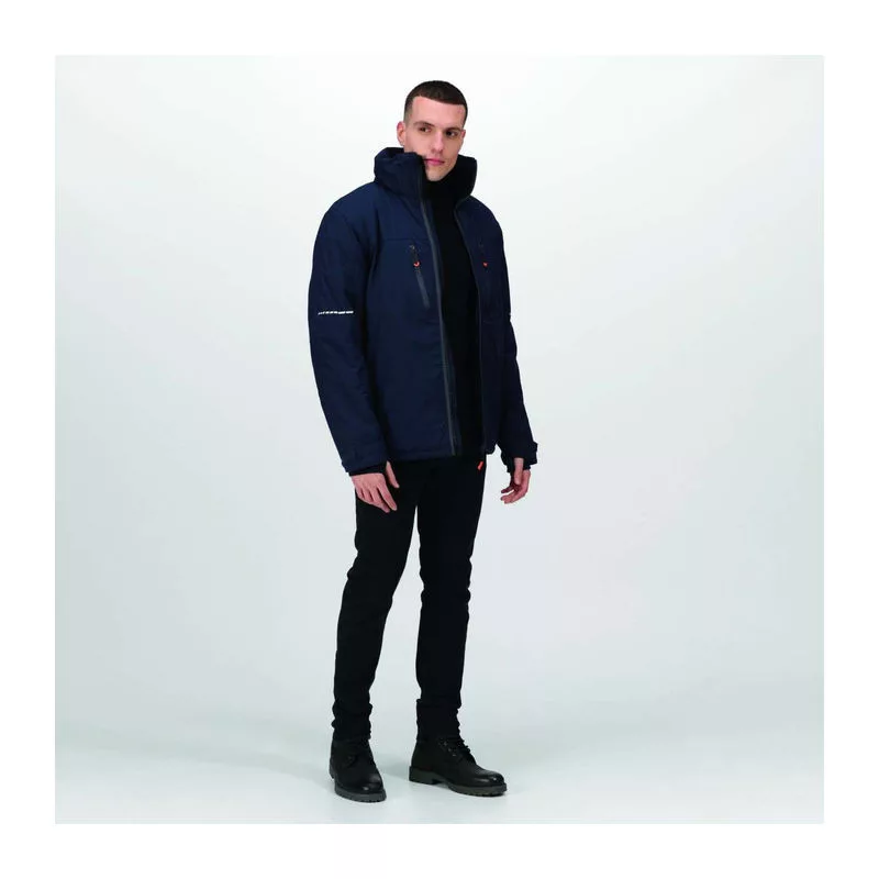 Alapanyag információ. Légáteresztő képesség 10 000g/m2/24 óra. Vízálló és lélegző ISOTEX 10000 100% poliészter sztreccses szövet. Poliészter ripstop szövet. Megfelel az EN343:2003 A1:2007 szabvány 3:2 osztálynak. Tartós vízlepergető felület. Szalagerősített varrások. Közepes Thermo-Guard szigetelés. Különleges tulajdonságok. Hőtükröző bélésbetét a hő megtartásáért. RFID zsebvédelem. Elöl középen vízálló cipzár. 2 vízálló cipzáras mellzseb. 2 cipzáras alsó zseb. Rejtett kapucni állítókkal. Fényvisszaverő kivitel a jobb láthatóságért. Állítható mandzsetták. Belső viharmandzsetták. Behúzózsinórral állítható szegély. Belül cipzáras hímzési hozzáférés. Meleg tapintású bélelt gallér.