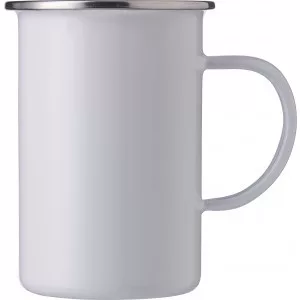 Zománcozott bögre rozsdamentes acél peremmel. Űrtartalom: 450 ml. Csomagolása barna kartondoboz.