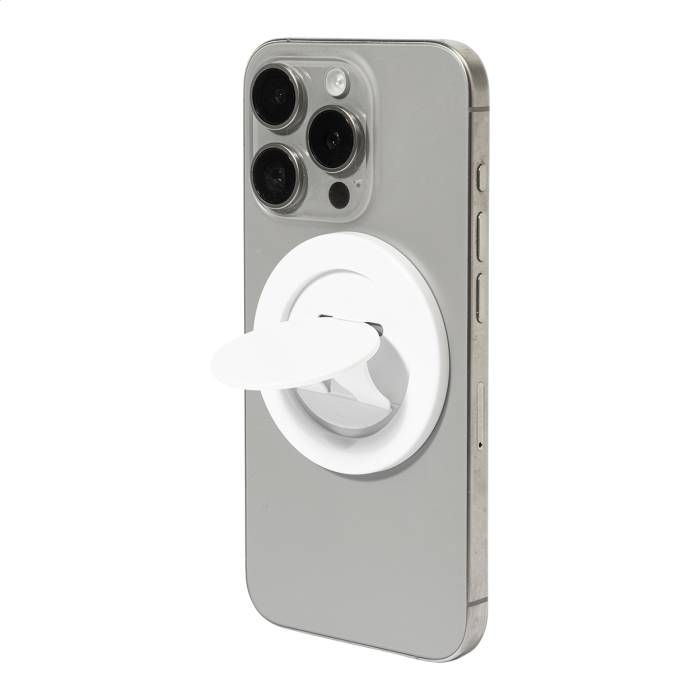 Mágneses mobiltartó újrahasznosított ABS-ből. Öntapadós fémgyűrűvel a mágneses felület nélküli telefonokhoz.