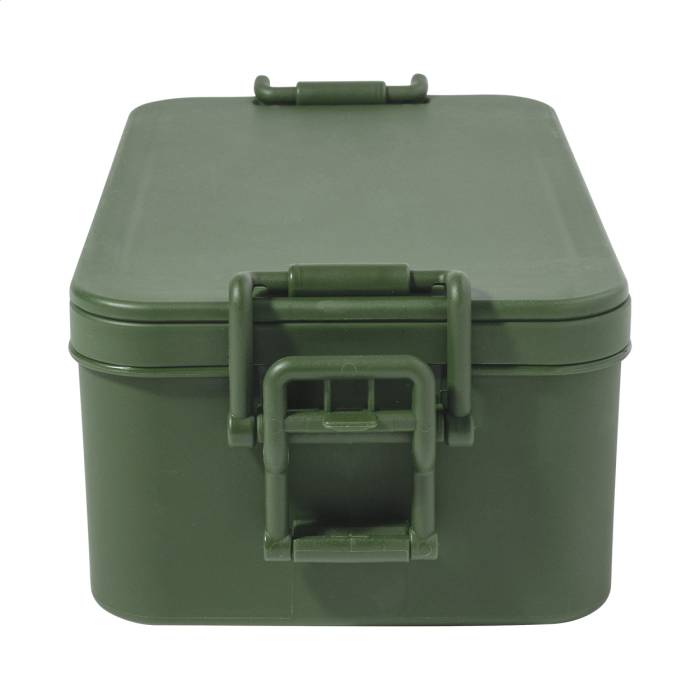 PP műanyag ételdoboz evőeszközkészlettel (villa, kanál és kés), csatos zárral és 2 rekesszel (1000 ml és 800 ml). Egymásra rakható kialakítással a kompakt tárolás érdekében.