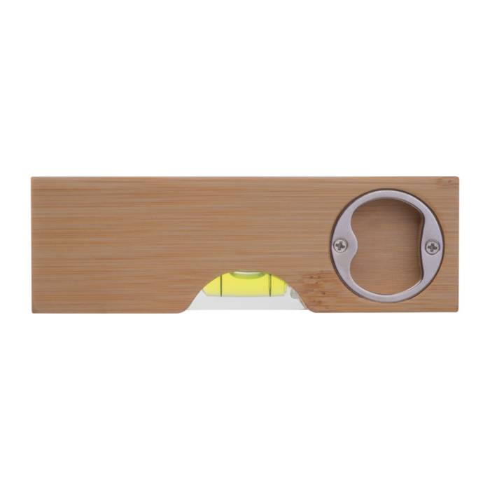 Bambuszból készült vízszintező cm mércés skálával és beépített üvegnyitóval.