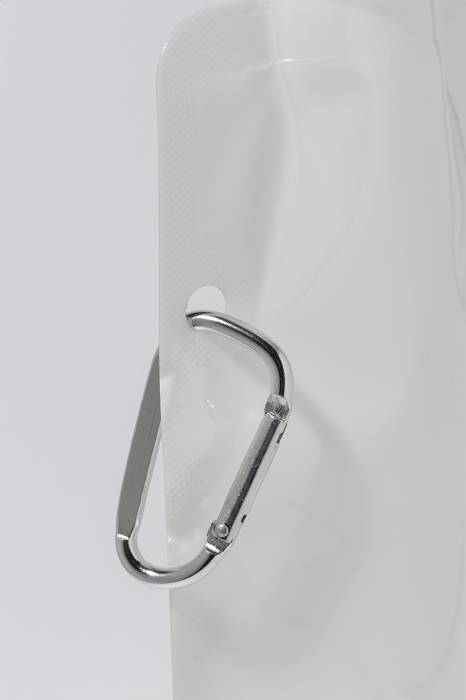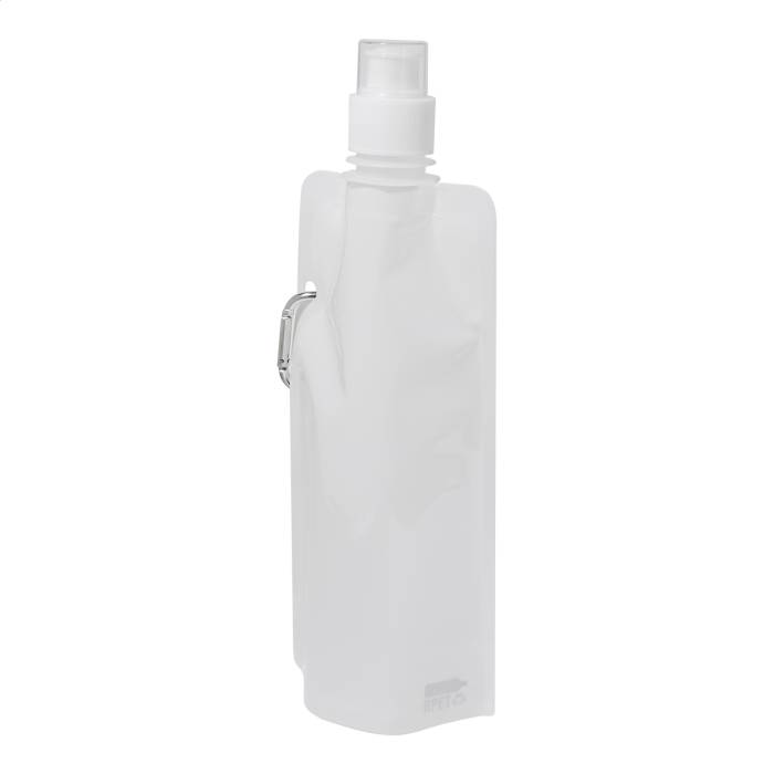 Összecsukható RPET sportkulacs ivófedéllel és alumínium karabinerrel, 500 ml. BPA-mentes. Nem alkalmas szénsavas italok tárolására.