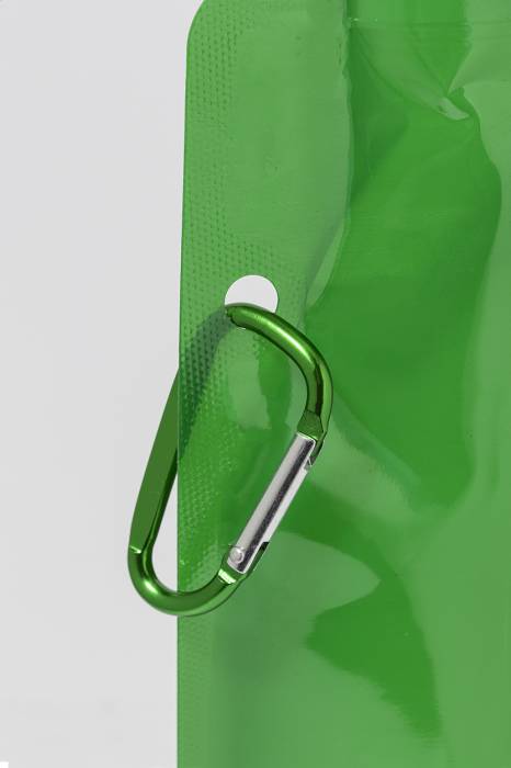 Összecsukható RPET sportkulacs ivófedéllel és alumínium karabinerrel, 500 ml. BPA-mentes. Nem alkalmas szénsavas italok tárolására.