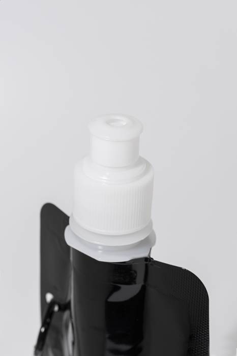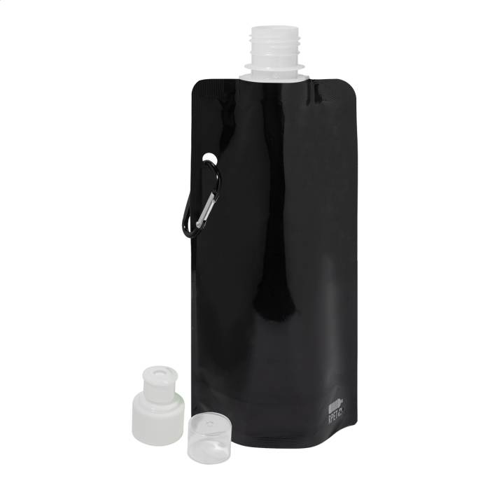 Összecsukható RPET sportkulacs ivófedéllel és alumínium karabinerrel, 500 ml. BPA-mentes. Nem alkalmas szénsavas italok tárolására.
