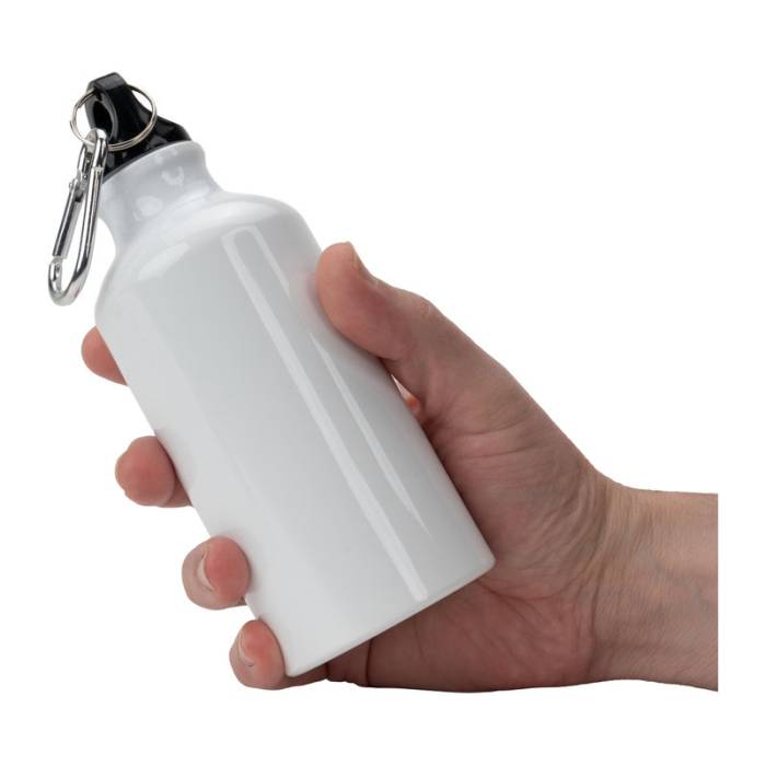 Szublimációs alumínium kulacs karabínerrel és 400 ml-es űrtartalommal.