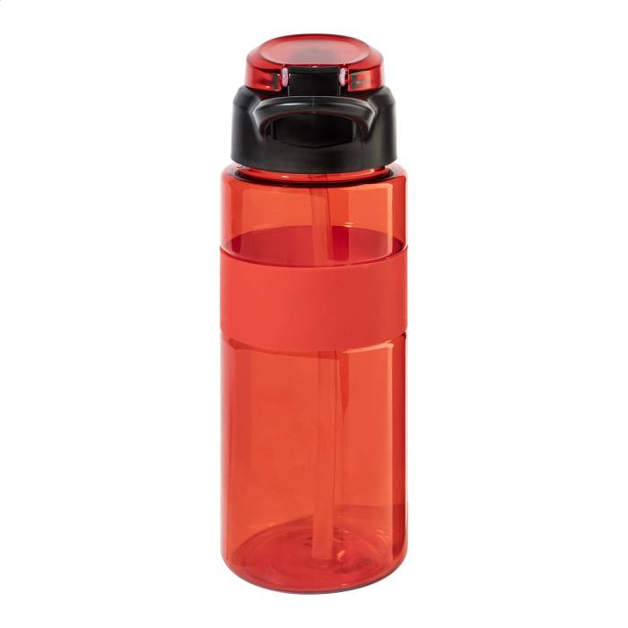 RPET sportkulacs szilikon markolattal, automatikusan nyíló, pattintható tetővel, beépített szívószállal, szilikon ivó résszel és biztonsági zárral. 700 ml. BPA-mentes. Nem alkalmas szénsavas italok tárolására.