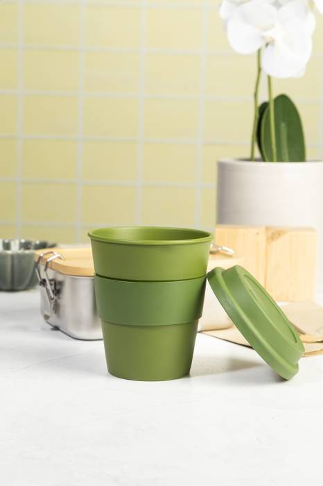 Egyfalú, PP műanyag utazópohár TPE ivófedéllel és markolattal. 350 ml.