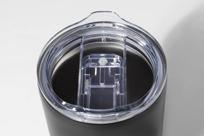 Duplafalú, újrahasznosított rozsdamentes acélból készült hőszigetelt thermo pohár ABS műanyag ivófedéllel. 600 ml.