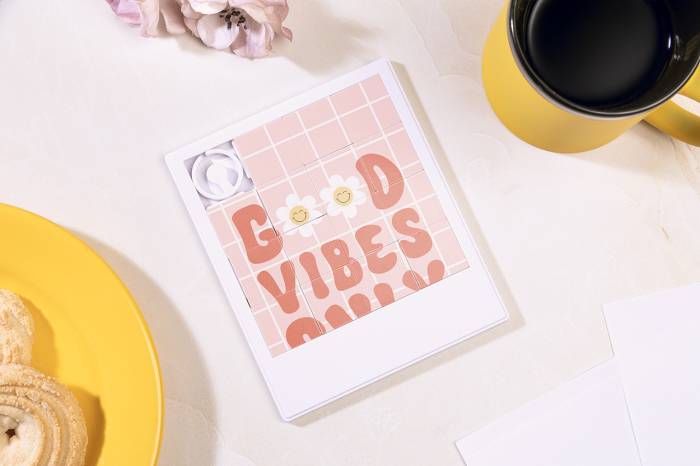 Nagyméretű, újrahasznosított ABS csúsztatható kirakó nyomtatható felülettel.