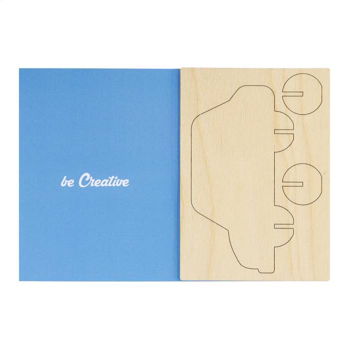 Egyedi gyártású papír képeslap fa kirakóssal. C6-os postai borítékkal. Az ár tartalmazza mindkét oldal digitális nyomtatását. Minimális rendelési mennyiség: 100 db.