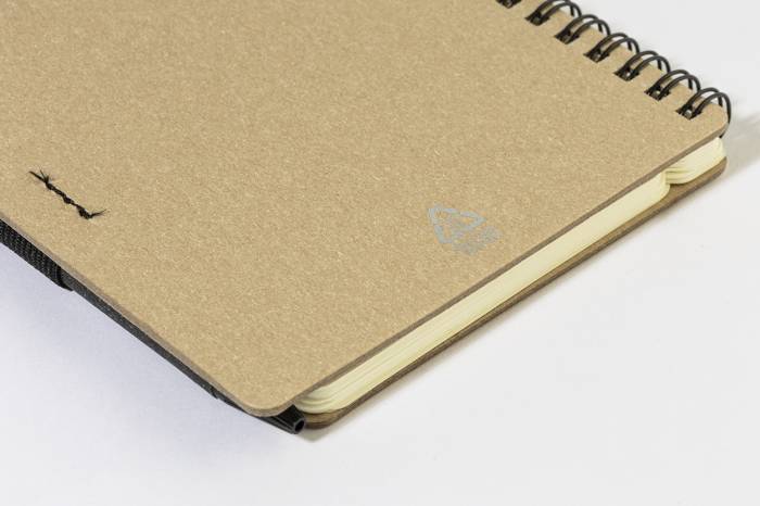 GO-2715-01 Újrahasznosított spirálfüzet tollal, 60 lapos, fekete/natú...