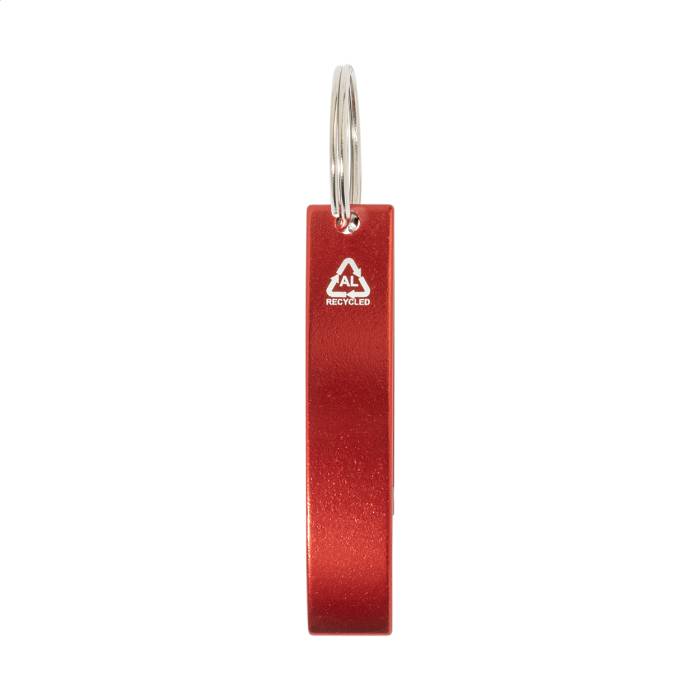 Újrahasznosított alumínium üvegnyitó fém kulcskarikával.