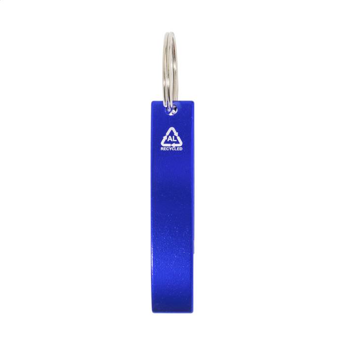 Újrahasznosított alumínium üvegnyitó fém kulcskarikával.