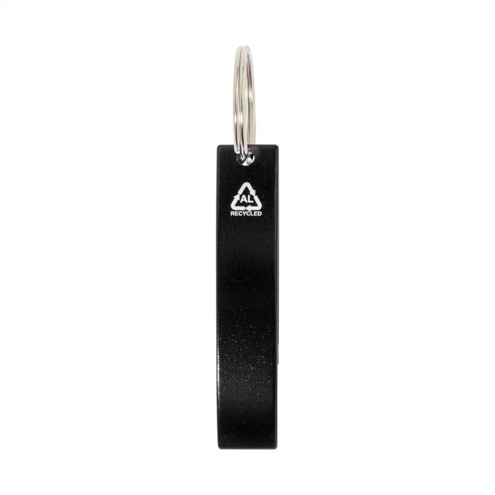 Újrahasznosított alumínium üvegnyitó fém kulcskarikával.