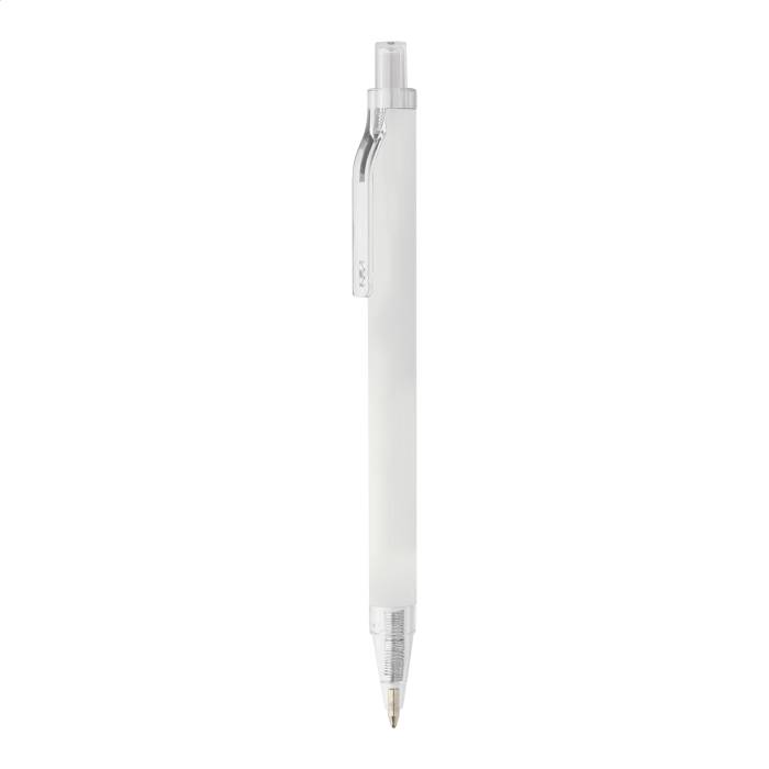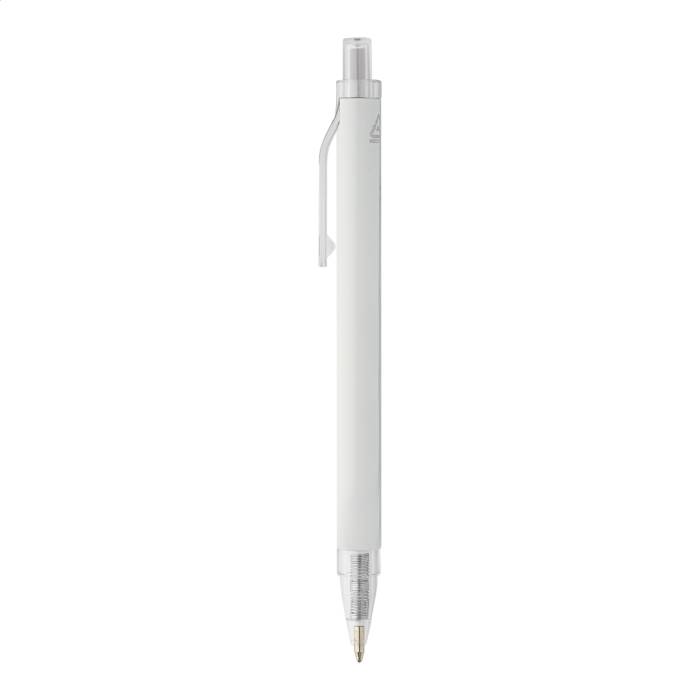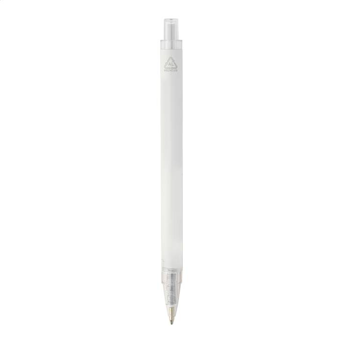 Újrahasznosított alumínium golyóstoll matt felülettel és átlátszó RPET részekkel. Kék tollbetéttel.
