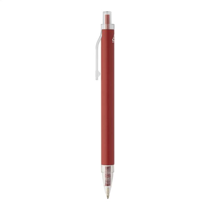 Újrahasznosított alumínium golyóstoll matt felülettel és átlátszó RPET részekkel. Kék tollbetéttel.