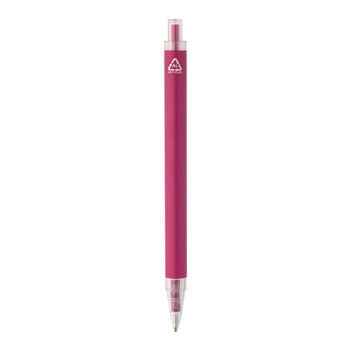 Újrahasznosított alumínium golyóstoll matt felülettel és átlátszó RPET részekkel. Kék tollbetéttel.