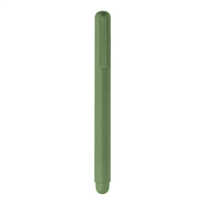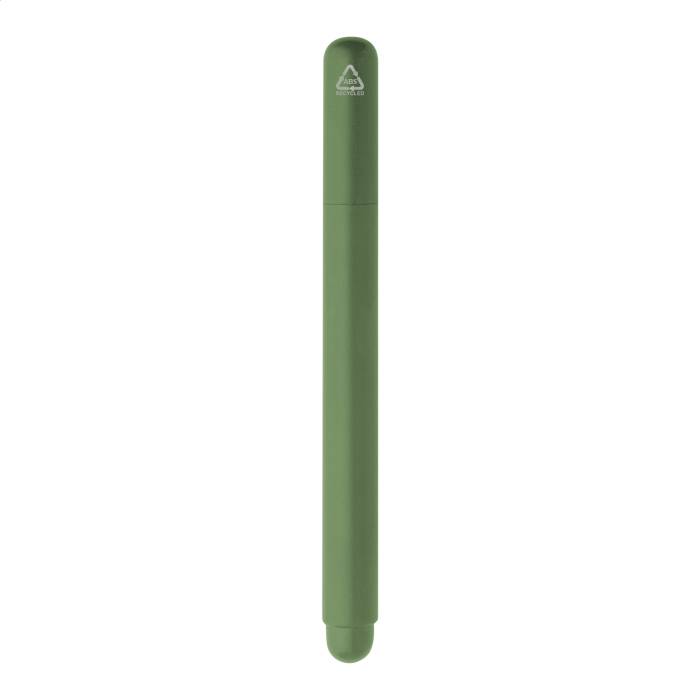 Újrahasznosított ABS zselés toll kupakkal. Kék zselés tintával ellátott tollbetéttel.