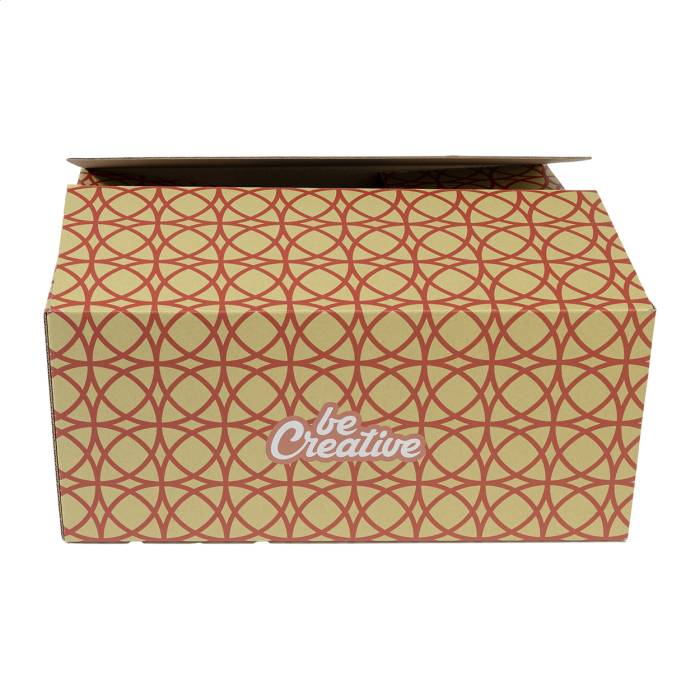 Egyedi gyártású, full-colour nyomtatású hullámkarton postai doboz. Lapra szerelve szállítjuk, a tetejét és az alját le kell ragasztani. Minimális rendelési mennyiség: 50 db.