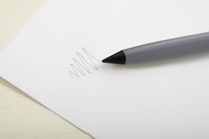 Újrahasznosított alumínium tintamentes toll fém heggyel, amely oxidálja a papírt. Ez a toll egy ceruzához hasonlóan ír és radírozható. Radírral ellátva.