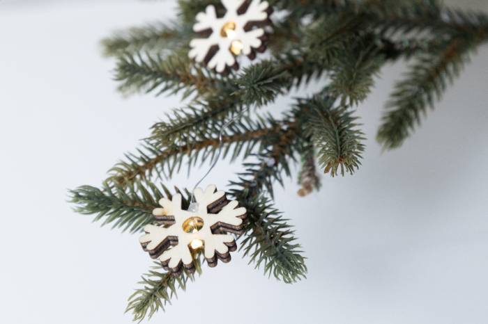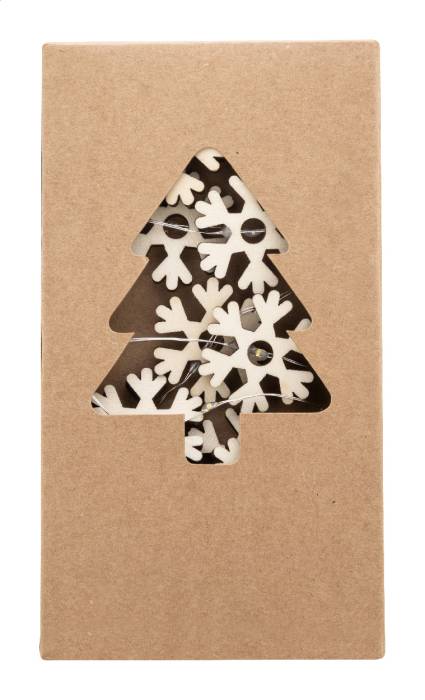 Karácsonyi fényfüzér 20 db hópehely alakú LED égővel. 2 db AA elemmel működik, elemek nélkül szállítjuk. KI/BE gombbal az elemtartón. Kraft papír dobozban.