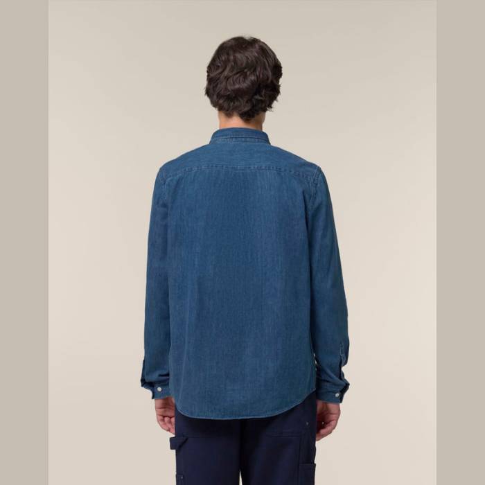 Farmering, legombolható gallérral, 235 g/m² indigo színű, organikus pamutból készült. Sokoldalú és környezetbarát. Pólóra, felsőre rétegezhető vagy önmagában is viselhető. Tökéletesen illik a Stella Denim női Inghez.