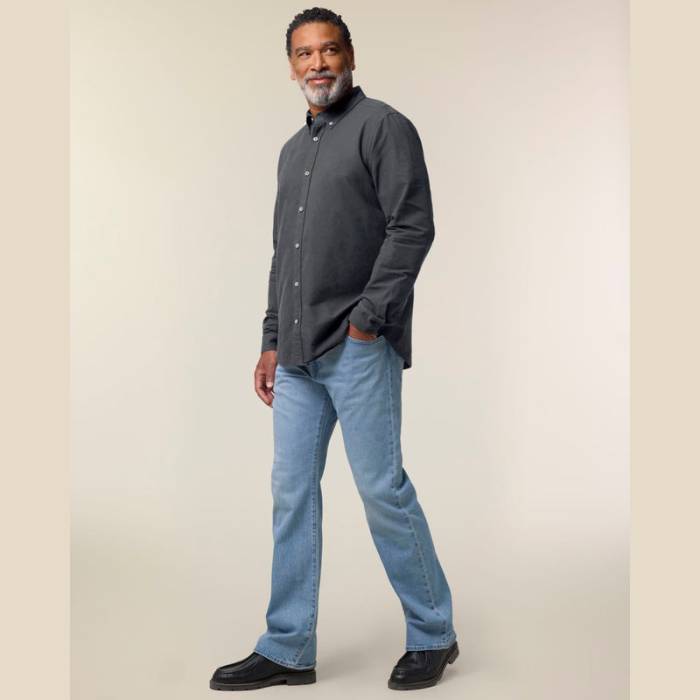 100% organikus pamut anyagú, 190 g/m² súlyú modern ing, elegáns megjelenést biztosít. Bármilyen alkalomra ideális választás, klasszikus dizájnja és környezetbarát anyaga révén kiemelkedő darab.