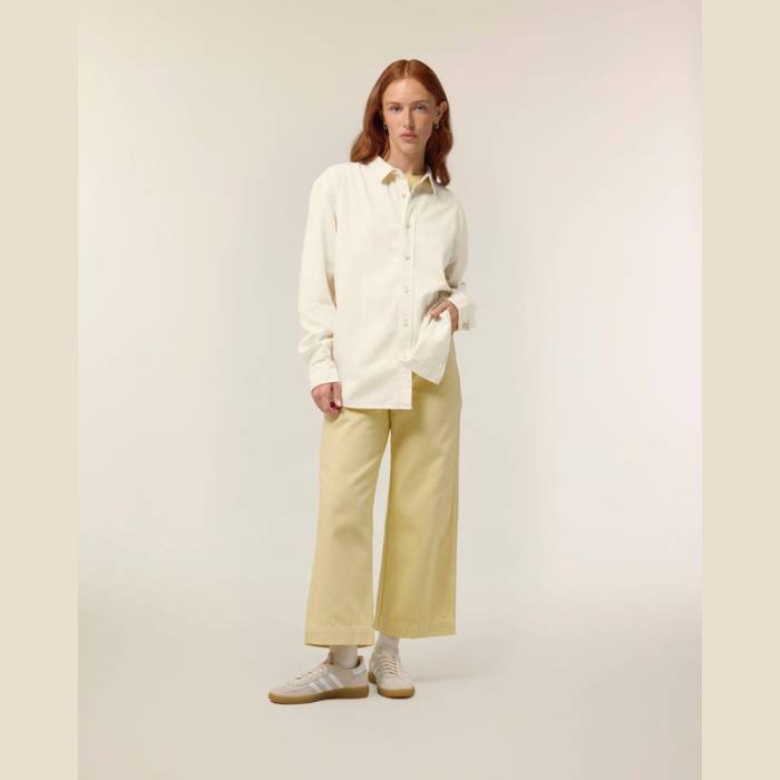 Uniszex laza szabású, 100% organikus pamut twill, 285 g/m². A munkaruházat ihlette, környezetbarát, tartós, és tökéletesen testre szabható. A előmosás során elért fakó varratok egyedi stílust kölcsönöznek.
