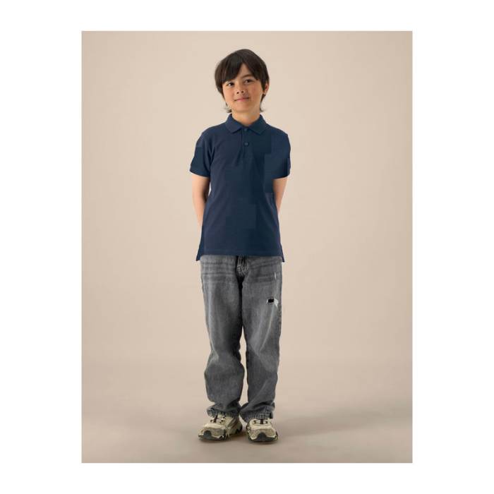 Elegáns gyerekpóló, amely bevarrt ujjakkal, bordázott gallérral és színben harmonizáló gombokkal rendelkezik. Oldalsó hasítékokkal, hosszabb hátrésszel és kiváló minőségű díszvarrással készült, hogy klasszikus megjelenést és kényelmes viseletet biztosítson.