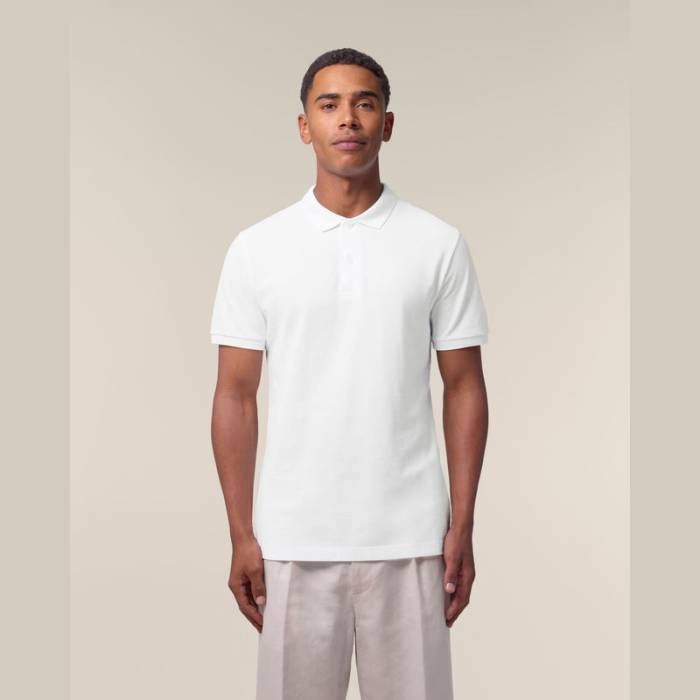 Prémium minőségű, 185 g/m² súlyú férfi póló, amely tökéletes választás melegebb időben. 100% organikus pamutból készült, újrahasznosított gombokkal. Stílusos és fenntartható, ideális egyedi eblémázáshoz. Különböző színekben elérhető.