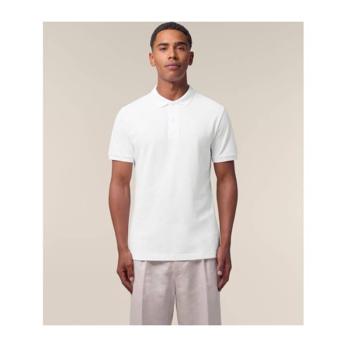 Prémium minőségű, 185 g/m² súlyú férfi póló, amely tökéletes választás melegebb időben. 100% organikus pamutból készült, újrahasznosított gombokkal. Stílusos és fenntartható, ideális egyedi eblémázáshoz. Különböző színekben elérhető.