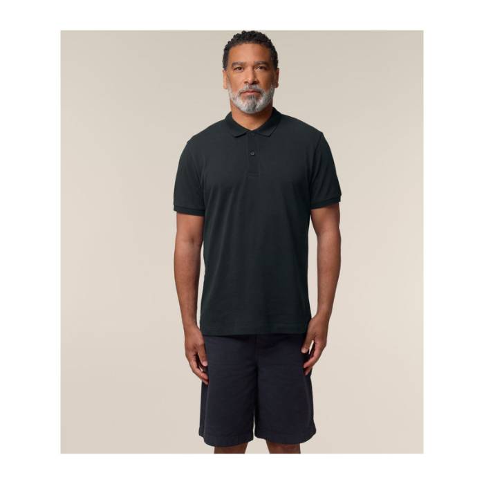 Prémium minőségű, 185 g/m² súlyú férfi póló, amely tökéletes választás melegebb időben. 100% organikus pamutból készült, újrahasznosított gombokkal. Stílusos és fenntartható, ideális egyedi eblémázáshoz. Különböző színekben elérhető.