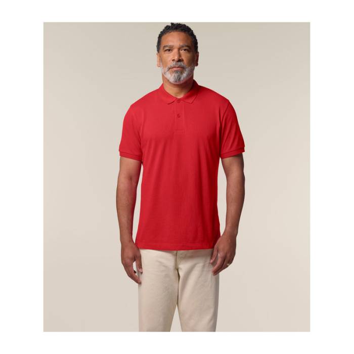 Prémium minőségű, 185 g/m² súlyú férfi póló, amely tökéletes választás melegebb időben. 100% organikus pamutból készült, újrahasznosított gombokkal. Stílusos és fenntartható, ideális egyedi eblémázáshoz. Különböző színekben elérhető.