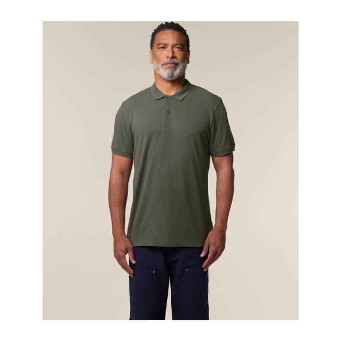 Prémium minőségű, 185 g/m² súlyú férfi póló, amely tökéletes választás melegebb időben. 100% organikus pamutból készült, újrahasznosított gombokkal. Stílusos és fenntartható, ideális egyedi eblémázáshoz. Különböző színekben elérhető.
