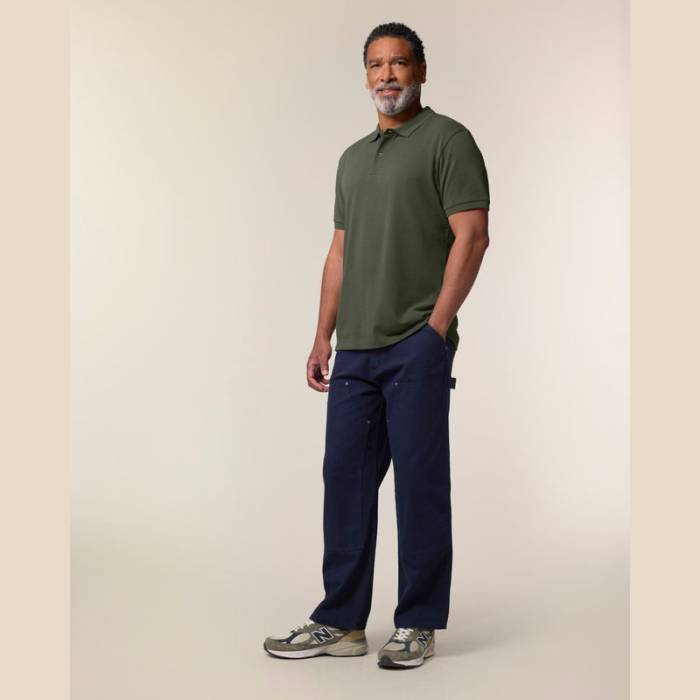 Prémium minőségű, 185 g/m² súlyú férfi póló, amely tökéletes választás melegebb időben. 100% organikus pamutból készült, újrahasznosított gombokkal. Stílusos és fenntartható, ideális egyedi eblémázáshoz. Különböző színekben elérhető.